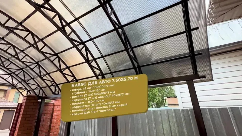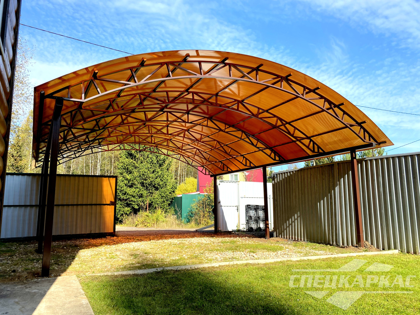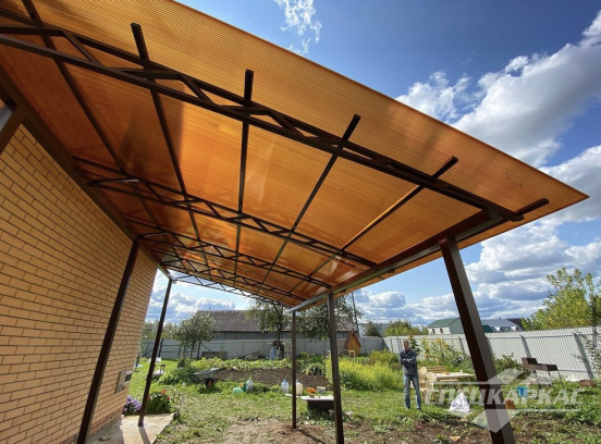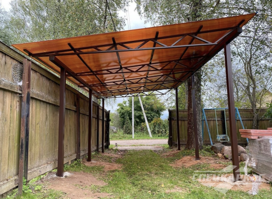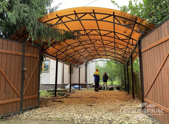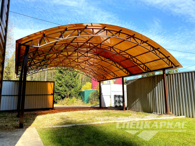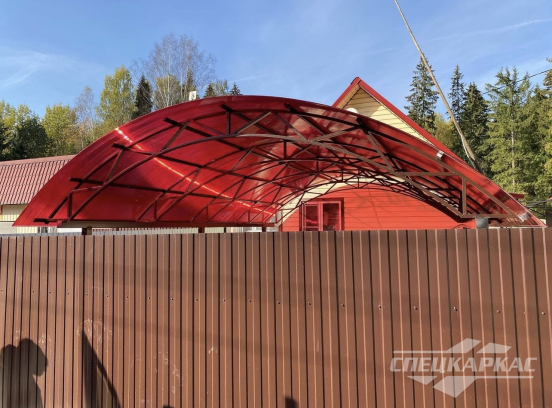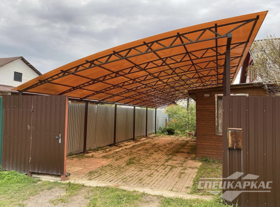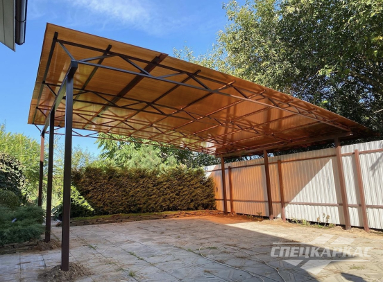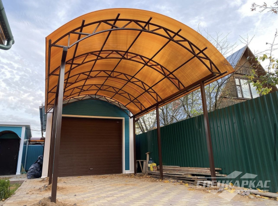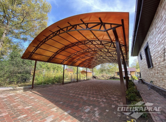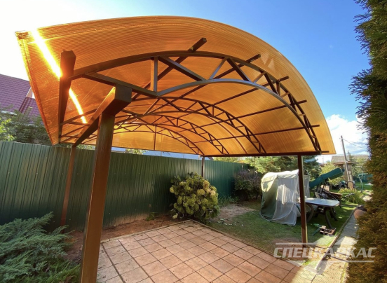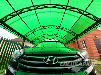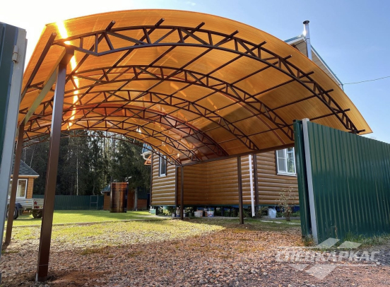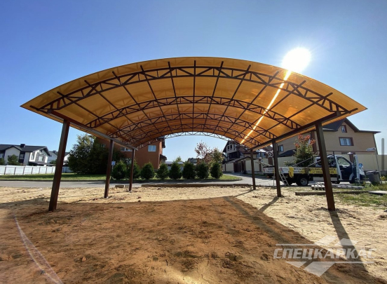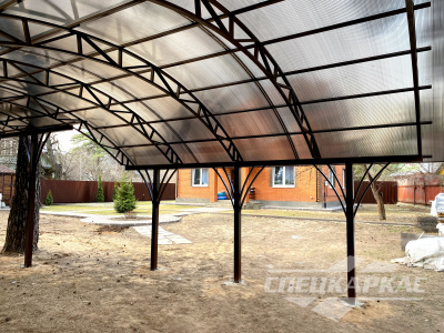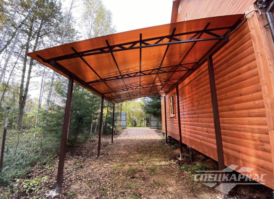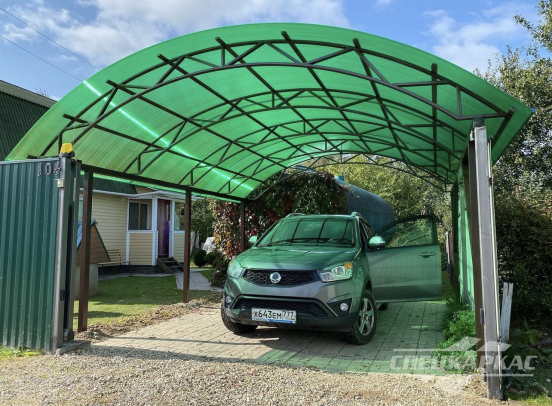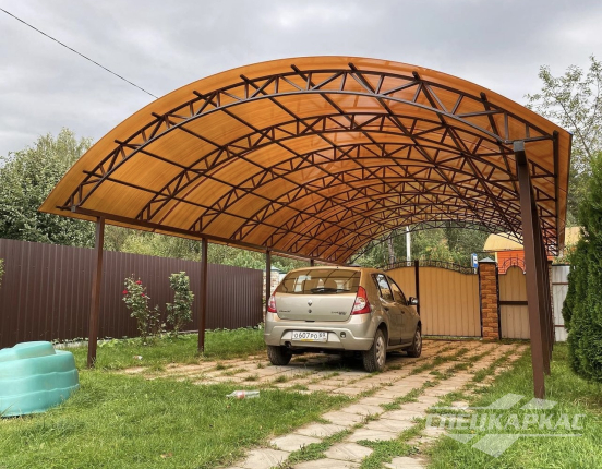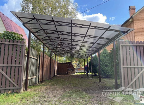 У нас вы можете купить навесы из поликарбоната как в виде отдельностоящих сооружений, так и пристенные и пристроенные варианты. Кроме того, Спецкаркас выпускают специальные: